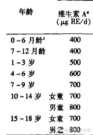 孩子一天需要多少维生素A呢?中国营养学会2000年的建议如下图
